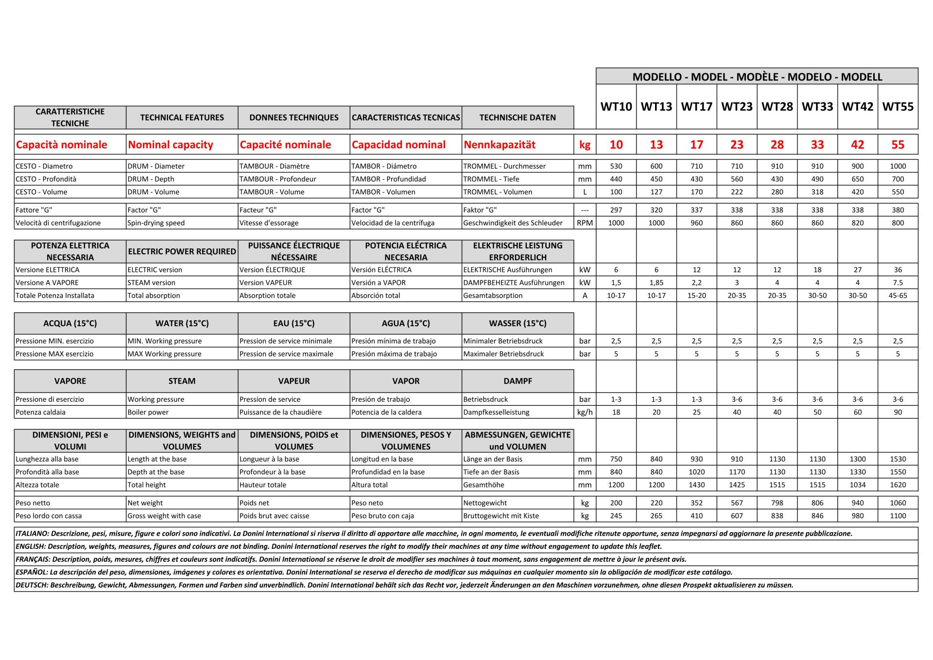 LAVATRICI AD ACQUA SUPERCENTRIFUGANTI SERIE WT
